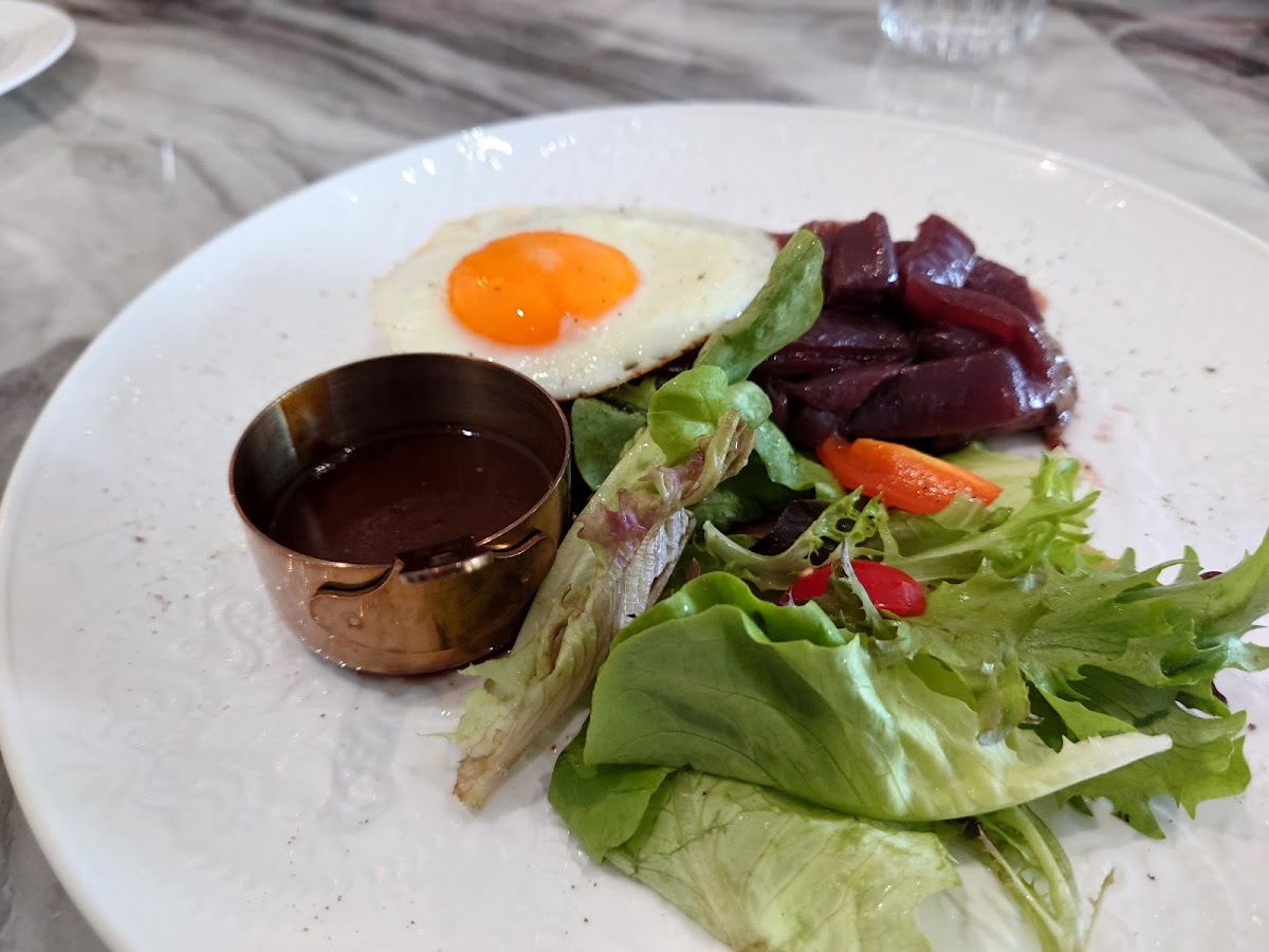 In general, we had good experience. We came for Sunday dinner and the place was not very busy. The drinks (lemonades) were good. As appetiser we took tuna tartar, which was not the best. We enjoyed the steak. It was a nice detail that it was set on fire in front of us. The duck also tasted good, especially with the raspberry sauce, but could be more juice honestly. The service was good, the waiter was attentive. To my taste, the design of restaurant looked slightly outdated but overall comfortable.
